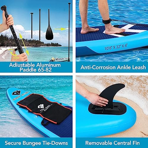Inflatable Stand Up Paddle Board 10′ 6″x 32″x 6″ with Premium SUP Accessories – Backpack, Adjustable Paddle, Non-Slip Deck, Hand Pump, Leash, Fins, Waterproof Bag