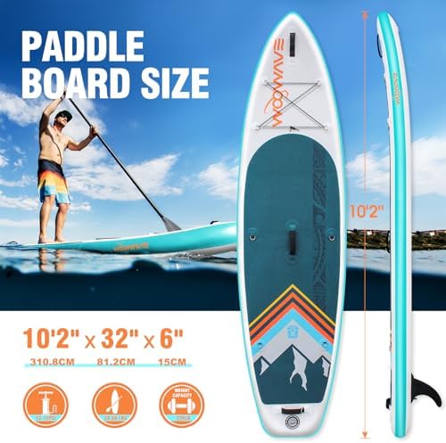 Inflatable Stand Up Paddle Board 10’2″X32″X6″ Wide Stance Non-Slip Deck, Premium SUP Accessories Including Hand Pump, Adjustable Paddle, Backpack, Surf Control Paddleboard for Youth and Adult