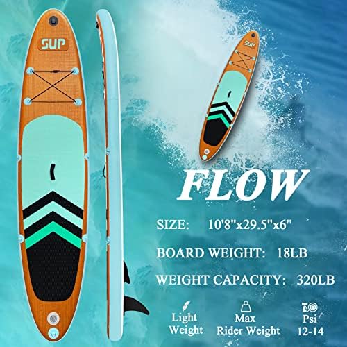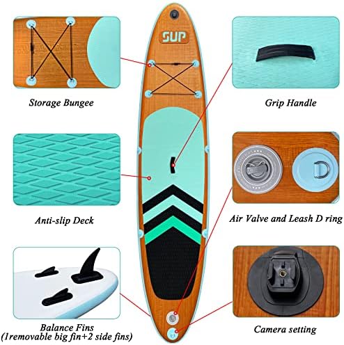 Inflatable Stand Up Paddle Board (6 Inches Thick), ISUP Package W/Premium SUP Accessories & Backpack, Non-Slip Deck,Fins, Adjustable Paddle, Leash, Hand Pump,Standing Boat for Youth & Adult