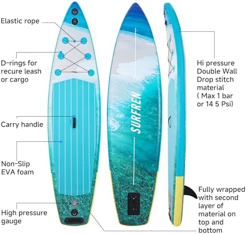 The paddle board inflatable is made with high-quality materials, features a weight limit of 350lbs, making it a reliable and safe option for any skill level.