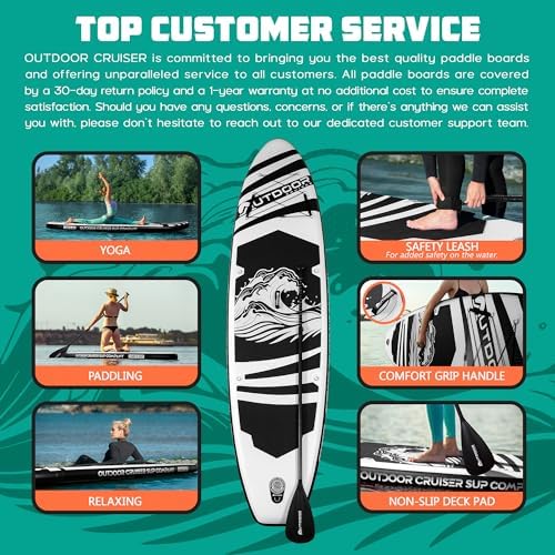 High-Quality Material: The OutdoorCruise SUP Board is constructed using advanced drop-stitch material and laminated PVC, ensuring exceptional durability and longevity. This high-quality construction makes the paddle board resistant to punctures and abrasions, providing a reliable and sturdy platform for water activities.