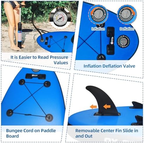 PREMIUM DURABLE MATERIAL – Constructed from the highest quality military-grade material, this inflatable paddle board can support a maximum load of up to 350 lbs, making it one of the most durable and lightweight boards available. The brushed thickening blow-up board features a non-slip soft deck, making it ideal for all skill levels and reducing the risk of accidents or injuries in case of falls.