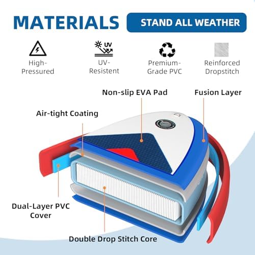 【Design and Use】Unique ergonomic handle design for easy inflation. Sensitive barometer for monitoring SUP inflation pressure (12-15psi). Multifunctional elastic string securely fastens objects on the board. Ultra-large backpack facilitates easy transport to desired locations.