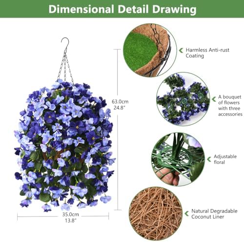 Artificial Flower Decorations: Fake Hanging Flowers in Baskets Look authentic and Stylish and can decorate your home and Garden, Indoors and Outdoors, blooming in every season and keeping your home alive and vibrant all year round.