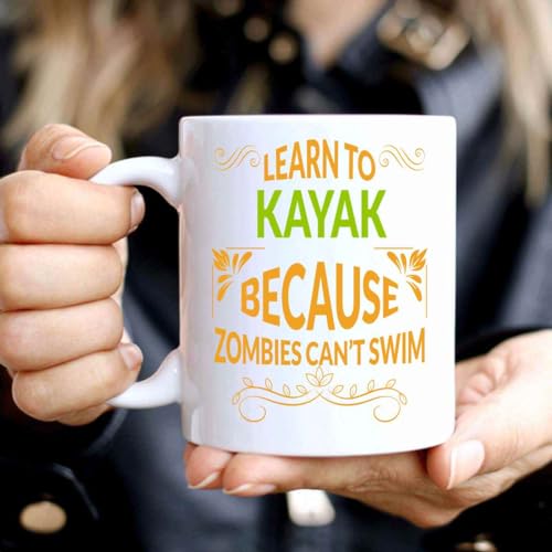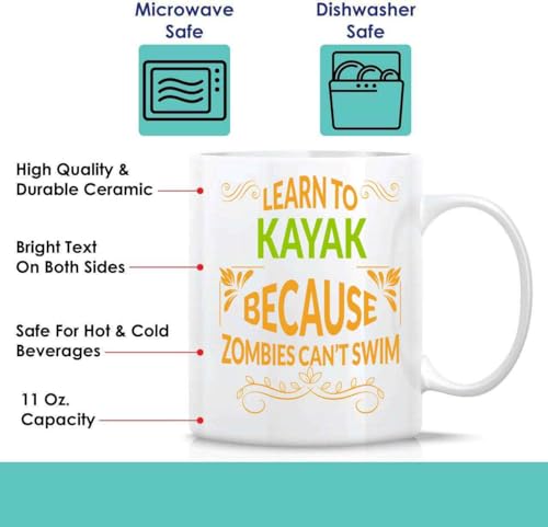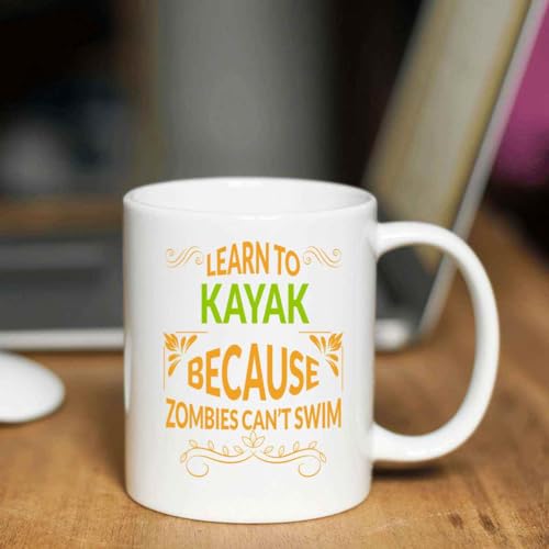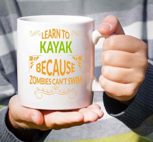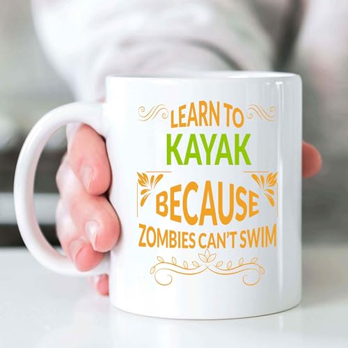 Inspirational Gift Input: Gift for Beginner Kayak Paddlers Learn Ti Kayak To Survive Zombies 11 Oz White Ceramic Coffee Mug