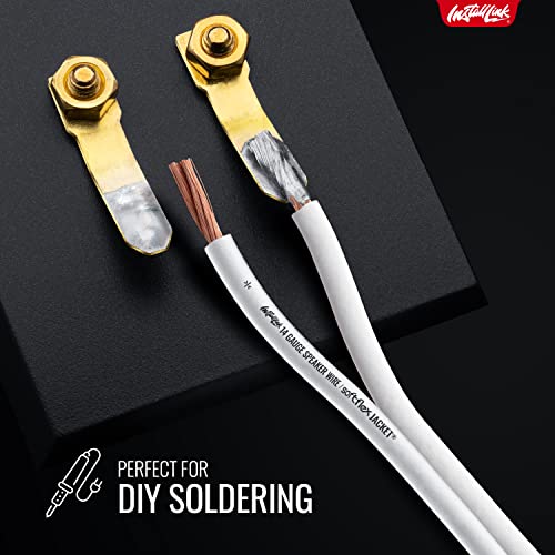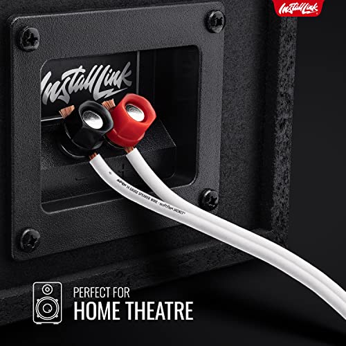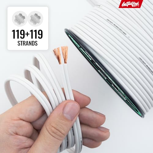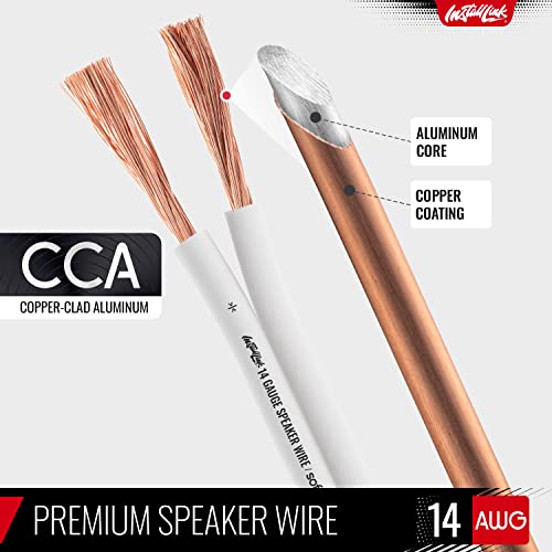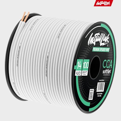 InstallLink 14 Gauge Speaker Wire (White) for Car, Home or RV Audio Cable, 100ft, CCA