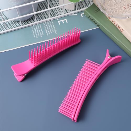 Ipetboom 2Pcs Hair Stylist Nonslip Hair Clips Comb Hair Sectioning Grip Clips Nonslip Hair Clips Comb for Hair Cutting Coloring Salon Home (Pink)