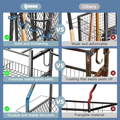 IPOW Large Garage Sports Equipment Storage Organizer| Ball Storage Rack| Garage Ball Organizer| Sports Gear Storage| New Garage Storage Racks With Baskets, Hooks, Bat Rack, Ball Ring Rack Steel