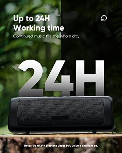 This rechargeable battery can provide up to 24 hours of playback at 50% volume and lights off.