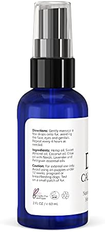 Help keep your furry friend calm with our all natural blend of oils that helps to promote a sense of relaxation and calmness. Soothing to the skin and to the mind, an aromatherapy blend of hemp, lavender, petitgrain and neroli oils is ideal for dogs exhibiting signs of nervousness, stress, anxiety and hyperactivity. Simply massage a few drops of CALM & HAPPY on your dog’s fur and enjoy the calm.