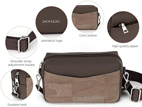 Jackie&Jill Small Crossbody Bags Purses for Women,Cork & Leather Shoulder Handbags with Wide Strap,Top Zipper Camera Bag