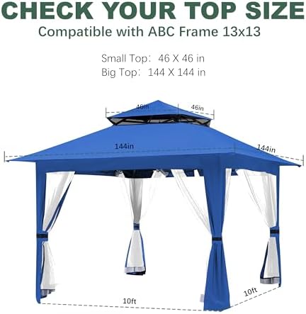 ✅Replacement Gazebo Top Only.Canopy Frame and Netting NOT Included.This replacement top was designed specifically for these brand frame.Please do not purchase if your frame isn’t these brand. This replacement top will not fit your gazebo frame.