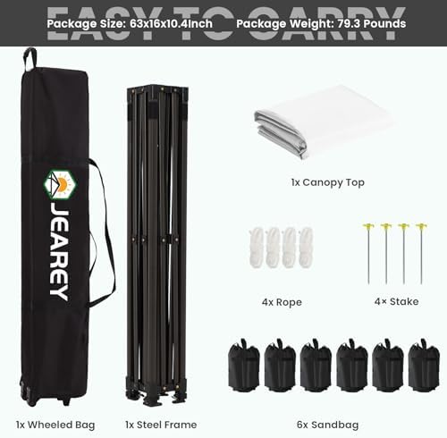 JEAREY 10x20FT Pop Up Canopy Tent, Heavy Duty Outdoor Canopy with Roller Bag & 4 Sand Bags, White
