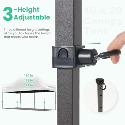 BIGGER SPACE: 10×20 Pop up canopy with straight legs provides a 200 square feet shade. The tent can support 15-20 people to sit in. Suitable for picnics, stalls, parties and can be used in sunny or rainy days