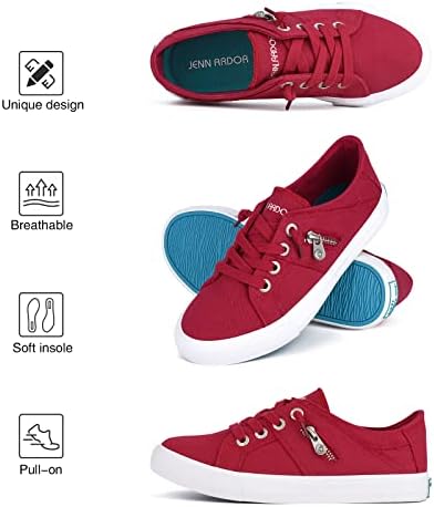 JENN ARDOR Women’s Fashion Slip on Sneakers Tennis Shoes Non Slip Casual Canvas Shoes for Women Comfortable Walking Shoes Low Top Sneakers Flats with Zipper