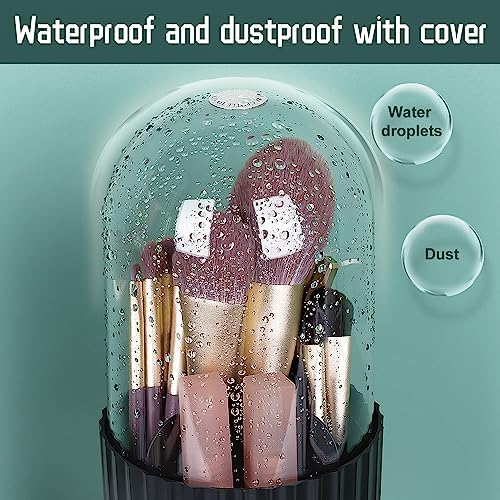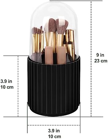 JessLab Makeup Brush Holder Organizer with Lid, 360 Degree Rotatable Makeup Brush Organizer Spinning Cosmetics Holders Brush Storage Box Display for Bathroom Vanity Countertop, Black