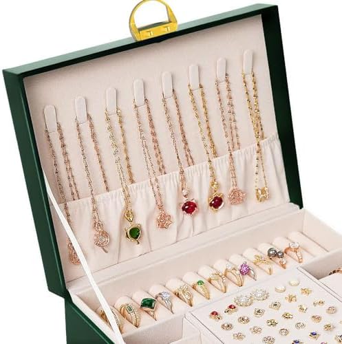 Jewelry Box,3-Layer Jewelry Organizer Box for Women Girls,Jewelry Storage Case for Necklaces Earrings Bracelets Rings Watches (Green)