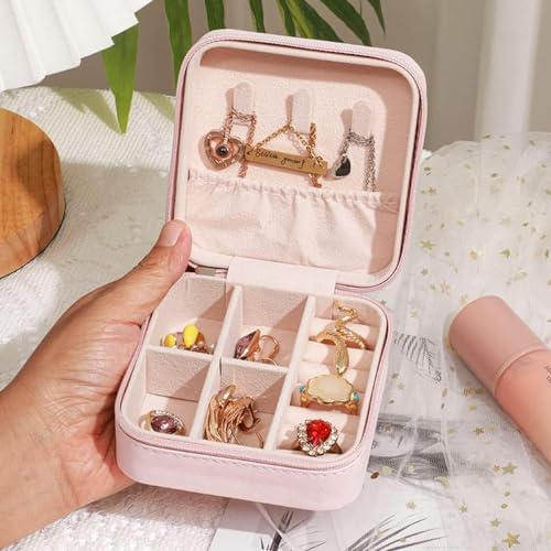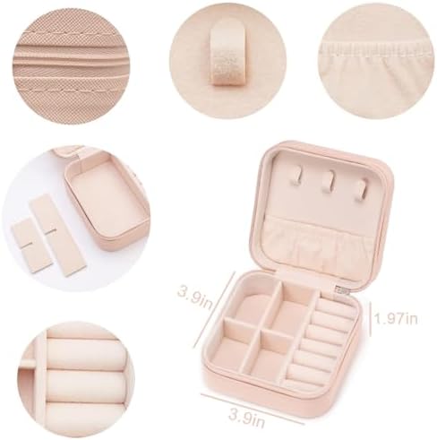 Jewelry Organizer Box Jewelry Travel Organizer for Women Girls Travel Jewelry Case Bridesmaid Gifts Travel Essentials Accessories for Rings,Necklaces,Bracelets,Earrings(Pink)