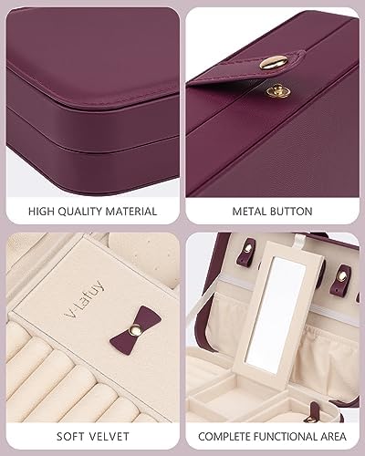 Jewelry Travel Organizer, Travel Jewelry Box Portable, Small Travel Jewelry Case with Mirror, PU Leather Small Jewelry Box for Women, Burgundy Red A