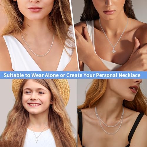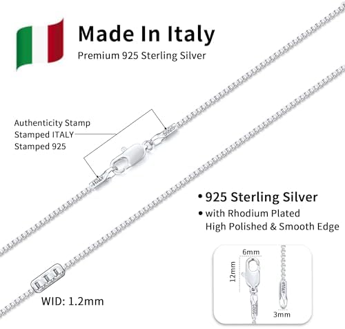 Jewlpire Italian 1MM 1.2MM Solid 14K Gold Over 925 Sterling Silver Chain Necklace for Women Girls, Italian Box Chain Thin & Sturdy & Comfortable Women’s Chain Necklaces 14 16 18 20 22 24 26 Inches