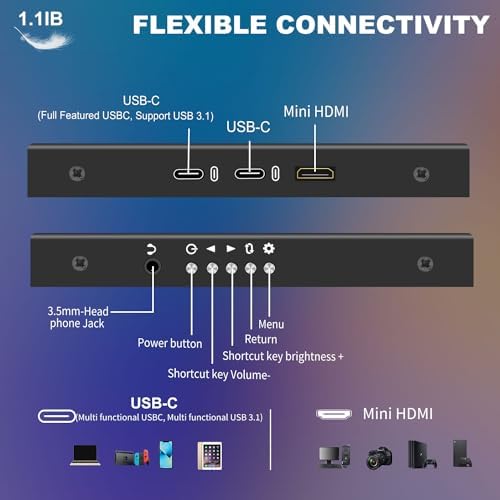 2.☀ Born for Excellent Picture Quality by 8 Bits Colors: Innovation 60HZ portable screen with 8 bits colors depth,the color transition will be smoother and more delicate, thecolors will be richer and brighter.