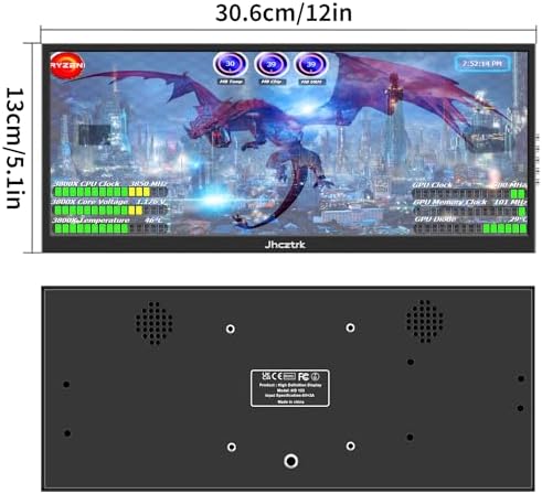 Jhcztrk 12.3 Inch Touchscreen Monitor PC Temperature Monitor External Expansion Display 1920 * 720 Mini Screen HDMI USBC Panel Aida64 CPU Data Monitor Auxiliary Screen