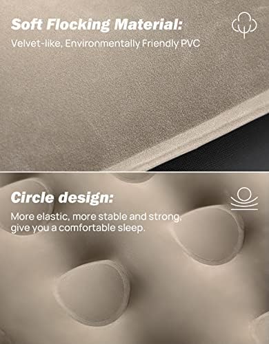 [Cavity Design] 3 air chambers, independent of each other, reduce the risk of air leakage and increase durability and life. Soft & High-quality: The surface and pillows are made of soft velvet-like flocking fabric. Making it also feel very cushiony. The bottom is constructed from environmentally friendly PVC material to prevent air leakage.