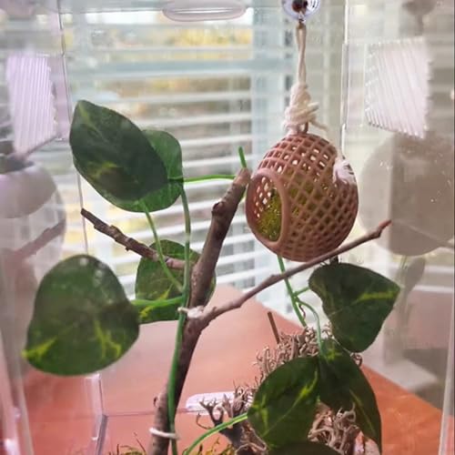 Quality Material: This jumping spider enclosure is made with quality resin, environmentally friendly, smooth face, protect your pets from harm. Nest size(LxWxH): 1.5×1.4×1.8inches, entrance size: 0.7×0.9inches. The hanging height about 4.5in.