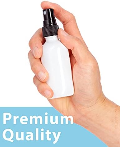 JUVITUS 2 oz High Shine Gloss White Glass Boston Round Bottle with Black Fine Mist Spray (12 Pack)