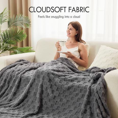 Kaisa Grey Blankets Throw 60″x80″, Ultra Soft Cozy Fleece Blanket for Couch Sofa Bed, 3D Checkered Blankets for Home Decor, Breathable Fleece Warm Lightweight Blankets, Gifts for Girl Woman, Gray
