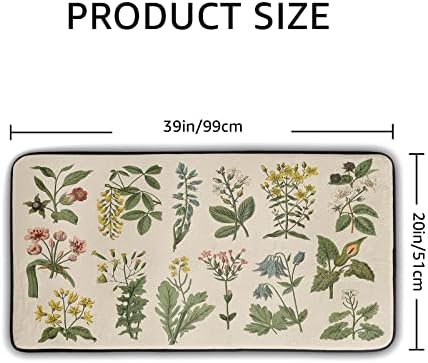 Kawani Floral Herbs Kitchen Rugs Floor Mat Anti Fatigue Washable Sage Leaves Door Mats for Home & Kitchen & Office Wild Plant Decor Memory Foam Mat Non-Skid 39x20inch…