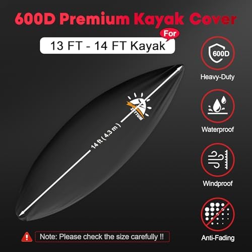 | Kayak Cover for 13 – 14 Ft Kayak | – Measures 14.1 ft in length, Zettum 14ft kayak cover is designed to fit most kayak from 13 to 14 feet. Also fit most universal boat like canoe, Sup, fishing boat, stand up paddle board, and wilderness system radar. ( Please make sure the size of your kayak is within 13 feet to 14 feet. )