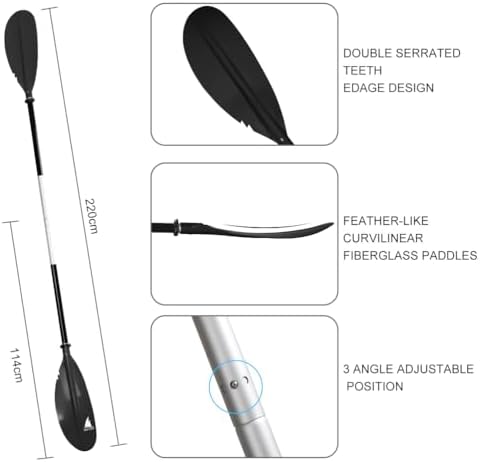 ADJUSTABLE:Adjust 3 lockbale position from 0 to 90°to fit your kayak speed.The Feather shaped baldes with 2 serrated teeth edge can reduce water drip into your kayak and keep your hand dry.
