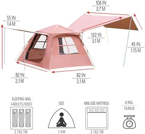✔ Durable Materials and Easy to Set Up: As a 3 person instant-setup tent, one person can put it up within 30 seconds, just like opening an umbrella. The tent is constructed with 150D Oxford fabric and technology fiberglass poles, which can ensure the tent’s durability and resistance to wind and rain.