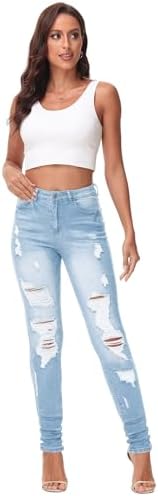KDF Women’s High Waisted Jeans for Women Distressed Ripped Jeans Slim Fit Butt Lifting Skinny Stretch Jeans Denim Pants