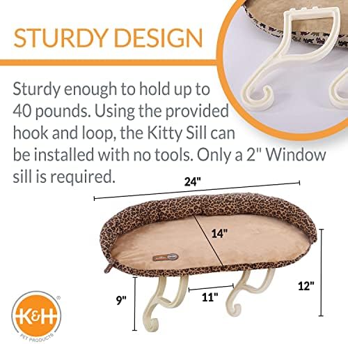 K&H Pet Products Deluxe Kitty Sill w/ Bolster Cat Window Bed, Cat Window Perch for Large Cats, Cat Window Hammock, Cat Window Seat, Window Cat Bed, Cat Perch Cat Hammock –Tan Leopard Print