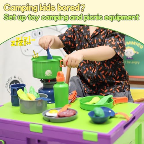 🍳【Learning Through Play】This kids camping toys allows kids to play camping toys with family or friends, which can enhance parent-child relationship or friendship. And help young children develop a unique interest in adventure and outdoor activities. Learn some simple cooking skills and recognize some foods while playing. These outdoor camping toys also help improve children’s communication, cooperation, creativity and hand-eye coordination.