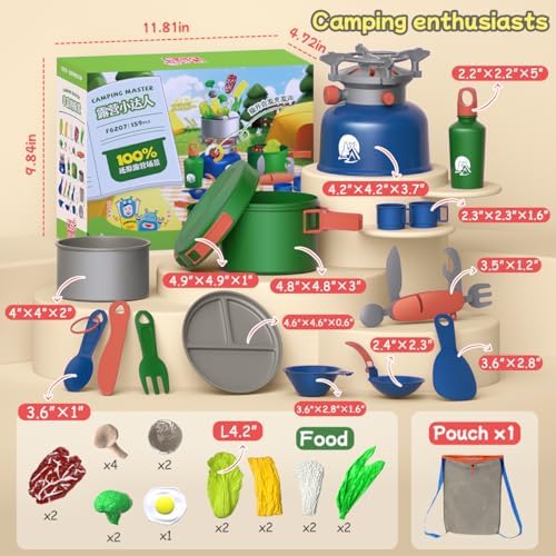 Kids Camping Toys Set-Toddler Toys for with Gas Canister, Camping Toys for Kids Indoor Outdoor Pretend Play,Pretend Food for Play Kitchen Camping Gear for Kitchen,Gift Idea for Boys & Girls Christmas