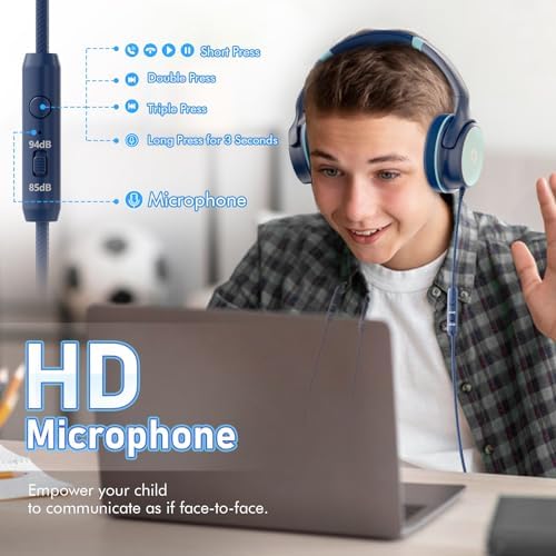 Kids Headphones with Safe 85dB/94dB Volume Limiter for Teen and Boys, Foldable HD Stereo Sound Headphones for Kindle Kids/fire Tablet/iPad/Laptop, Headphones with Microphone