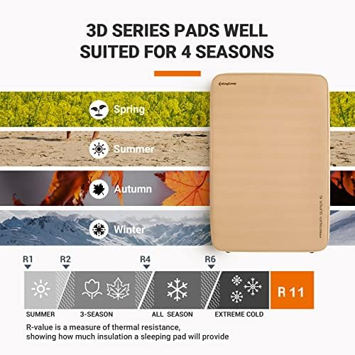 【WELL DESIGNED FOR WINTER CAMPING】R-value is the capacity of a material to insulate. The higher the number the better the insulation. Ideal choice for 4 season camping Warm and Comfortable Especially for Extreme Weather (15F° or below).