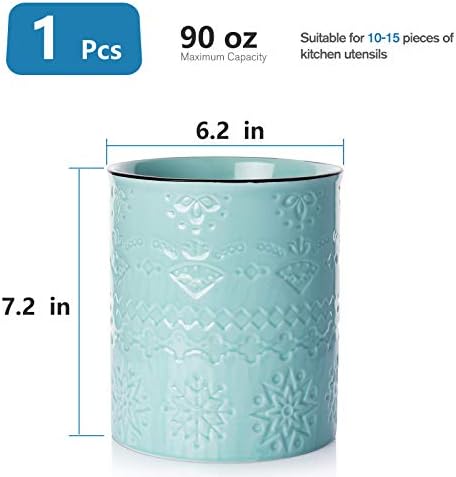 Kitchen Utensil Holder, 7.2″ Large Cooking Utensil Crock For Countertop, Heavy Ceramic Kitchen Tool Organizer, Farmhouse Home Decor Cutlery Caddy, Turquoise