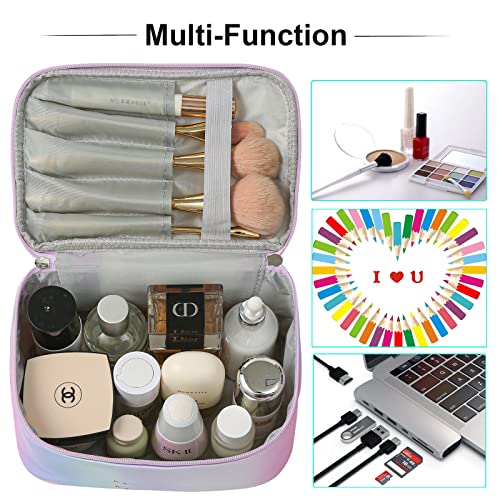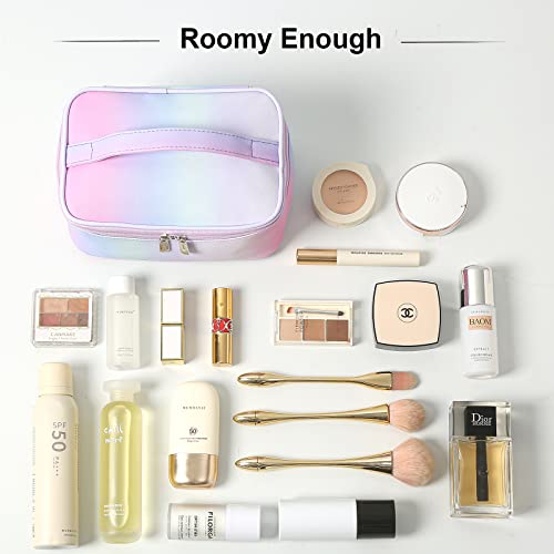 🌈Waterproof PU – The cosmetic is made of high-quality soft PU leather material, the surface is waterproof and wipeable, very easy to clean. No worries for messy leaks when ing or holiday vacation