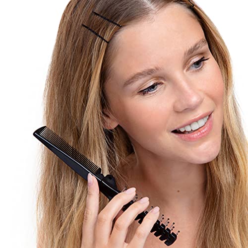 Kitsch Portable Folding Travel Hair Brush, Double Headed Collapsible Compact Pocket Hair Comb with Hair Scrunchies for Women Travel Essentials, Clear Elastic Hair Ties & Bobby Pins Black for Girls