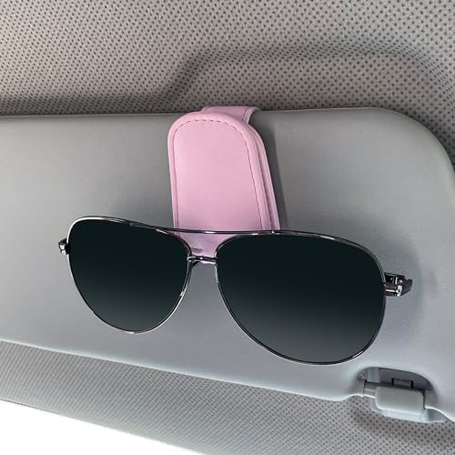 KIWEN Sunglasses Holders for Car Visor, Magnetic Leather Glasses Eyeglass Clip for Car, Ticket Card Clip Sunglasses Mount, Car Visor Accessories Gadgets (1, Pink)