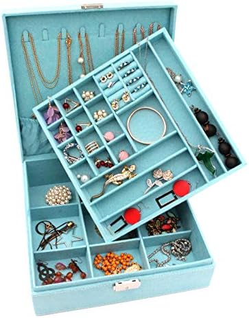 KLOUD City Two-Layer Jewelry Box Organizer Display Storage case with Lock (Blue)