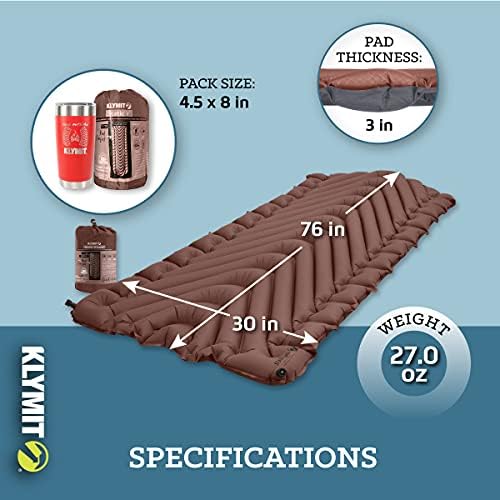 Klymit Static V Luxe Sleeping Pad, Lightweight Lofted Camping Air Mattress for Tents and Cars with Body Mapping Tech, 3 In Thick, Rootbeer