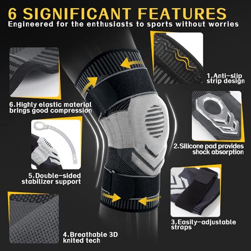 ✅[ Innovative Compression Knitting ] – With 3D high-density knitting technology, the high-elastic fabric increases the air permeability to minimize sweat buildup; offers 360-degree ideal compression around knee joints to accelerate the replenishment of oxygen-rich blood; promote blood flow and reduce stiffness, inflammation, and swelling; help keep the knee warm, lubricate knee joints, and relax tendons, knee pads for women & men.