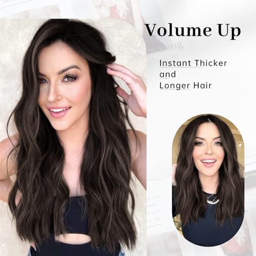 KooKaStyle Invisible Wire Hair Extensions with Transparent Headband Adjustable Size 4 Secure Clips Long Wavy Secret Wire Hairpiece Dark Brown/6# 16 Inch for Women
