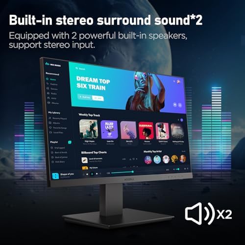 MULTIPLE PORTS: KOORUI monitors provide video interfaces via HDMI and VGA ports. This HDMI monitor is with 100Hz refresh rate (compatible with most normal graphics cards) and FHD 1920x1080p resolution. Experience the incredible sound and more immersive entertainment with two built-in speakers.