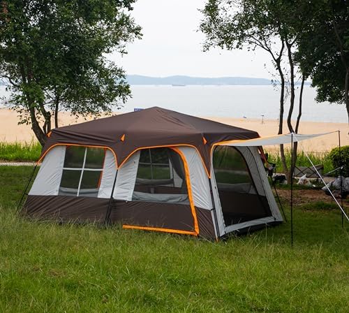 KTT Extra Large Tent 10-12-14 Person(B),Family Cabin Tents,2 Rooms,3 Doors and 3 Windows with Mesh,Straight Wall,Waterproof,Double Layer,Big Tent for Outdoor,Picnic,Camping,Family Gathering